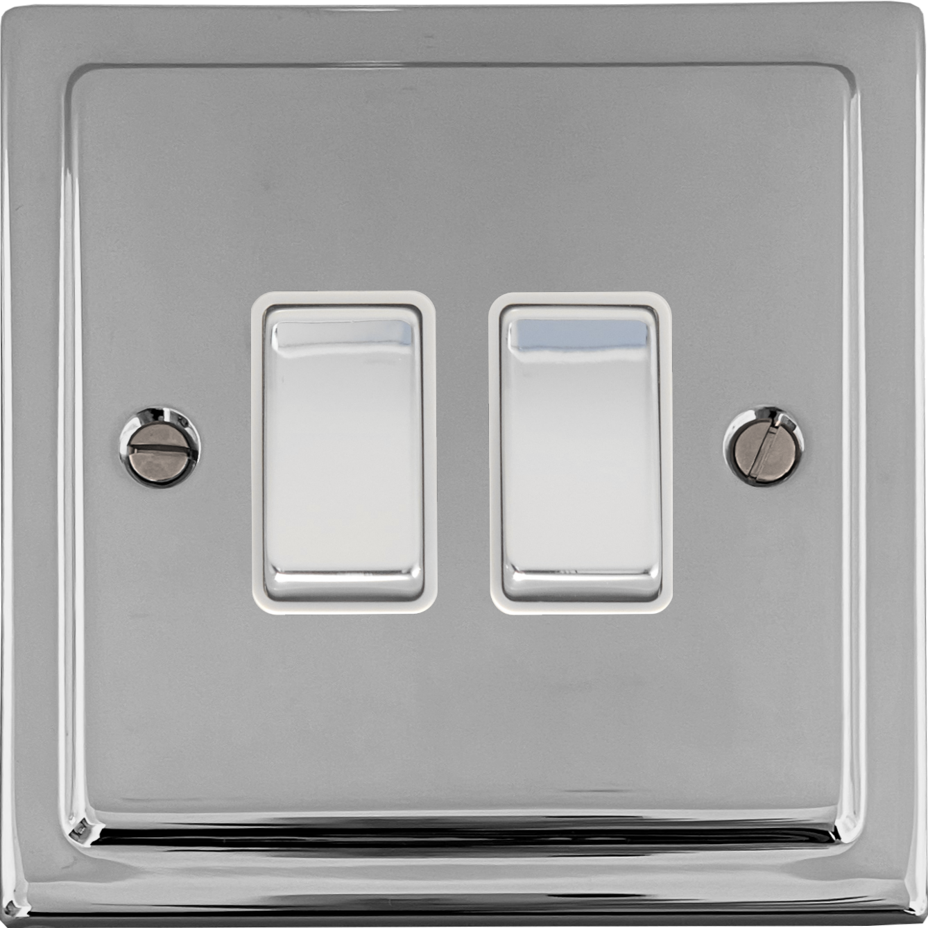 Polished Chrome Light Switch (2 Gang/White Insert/Polished Chrome Switches)