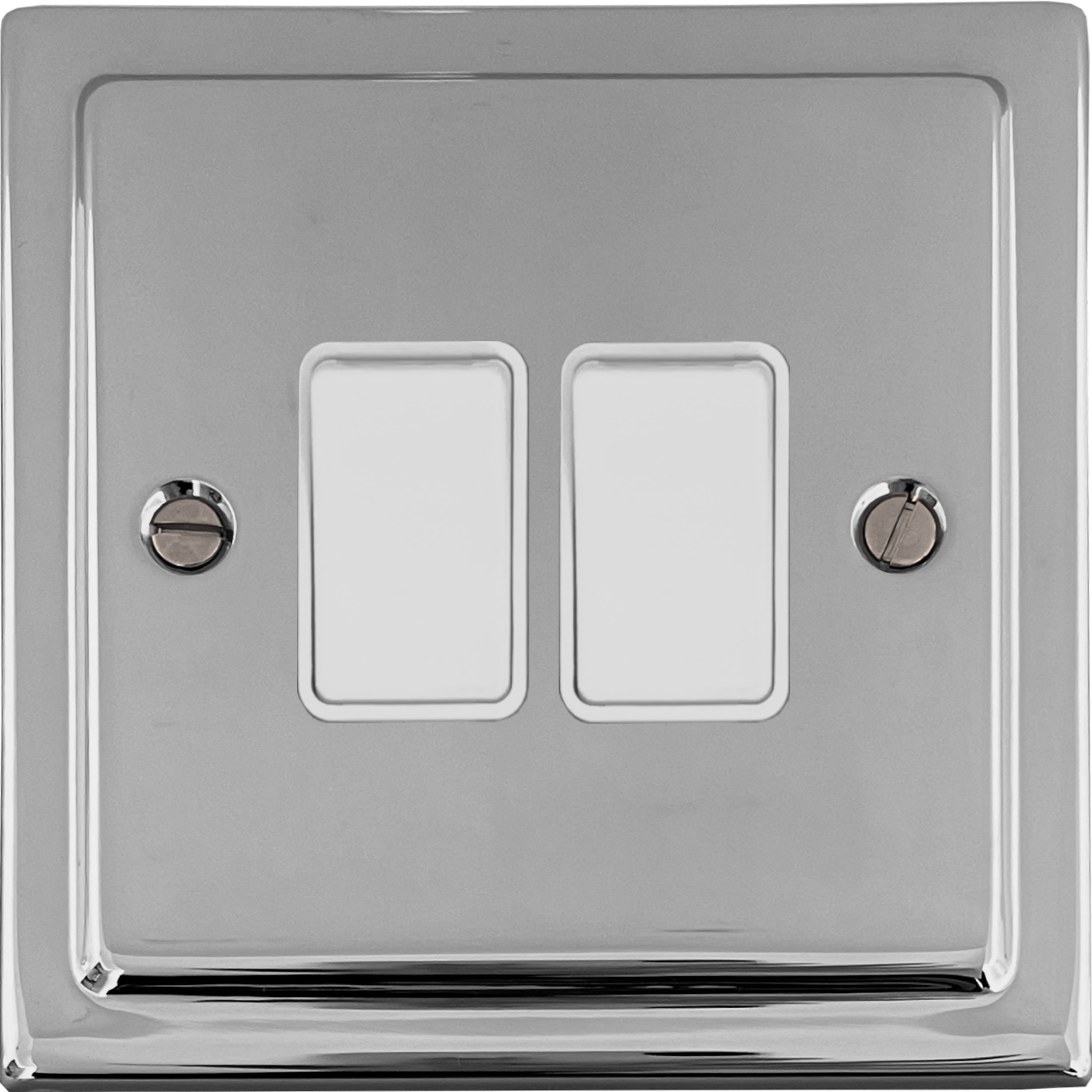 Polished Chrome Light Switch (2 Gang/White Switches) - G+H TC2W