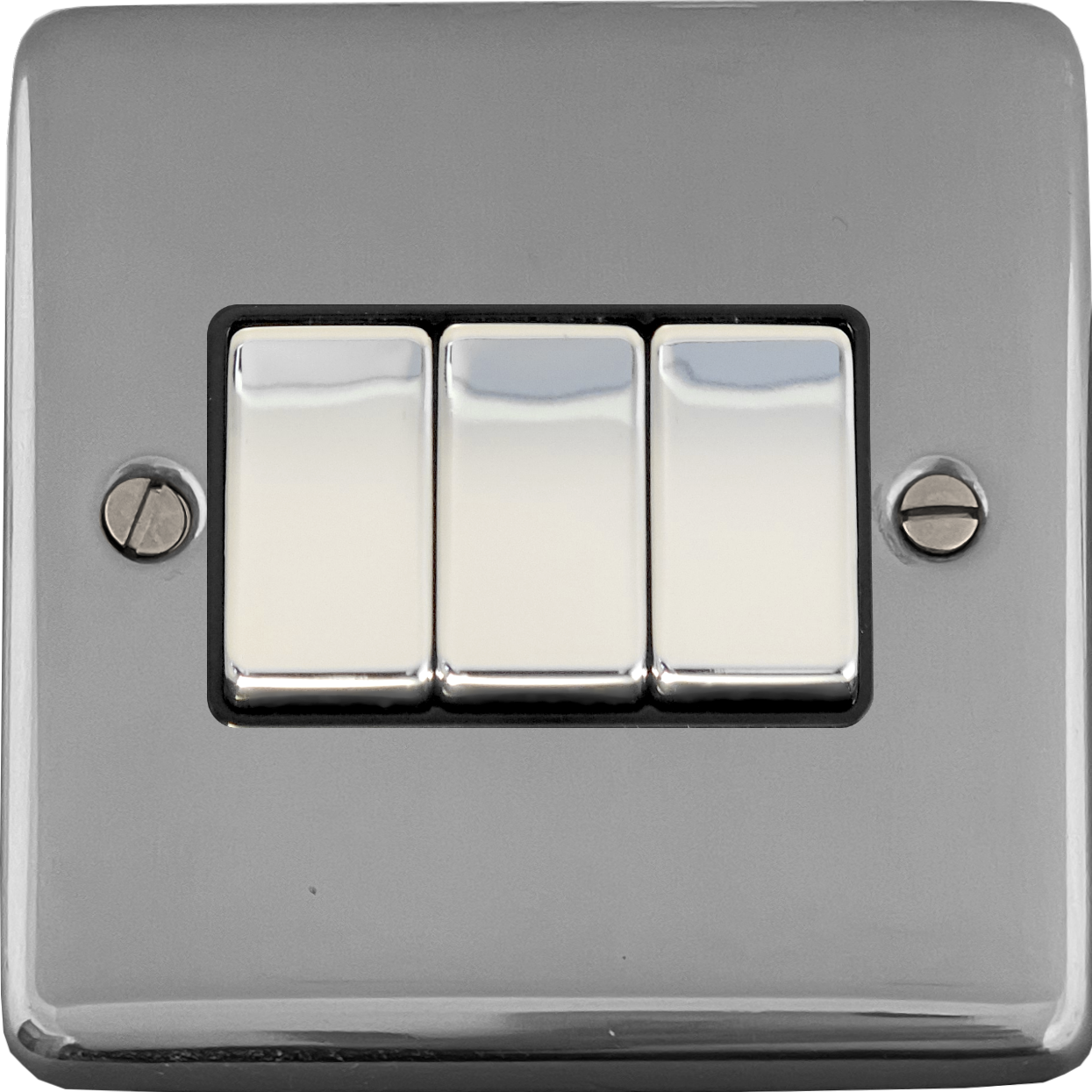Polished Chrome Light Switch (3 Gang/Black Insert/Chrome Switches) - G+H CC303