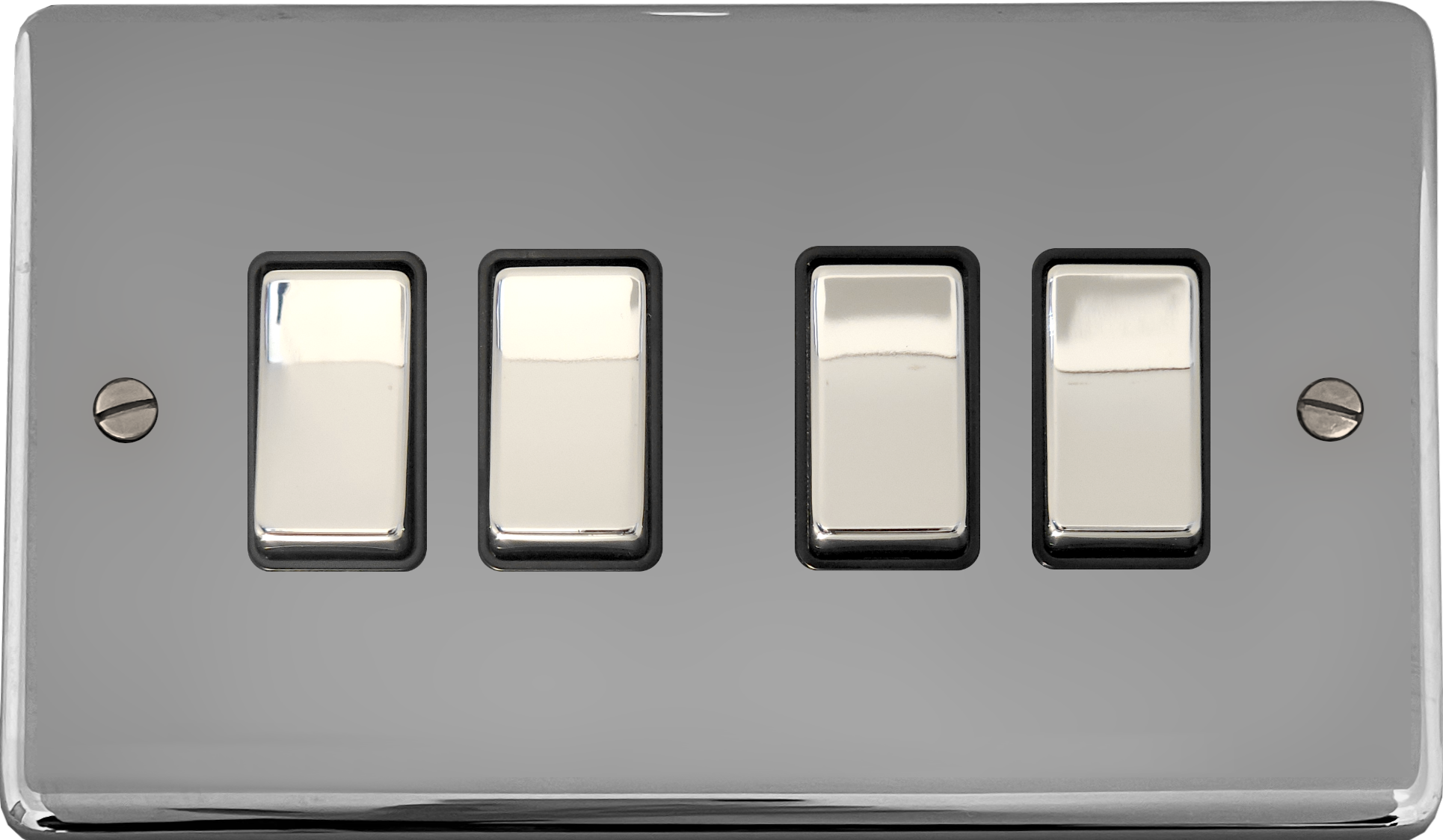 Polished Chrome Light Switch (4 Gang/Black Insert/Chrome Switches) - G+H CC304