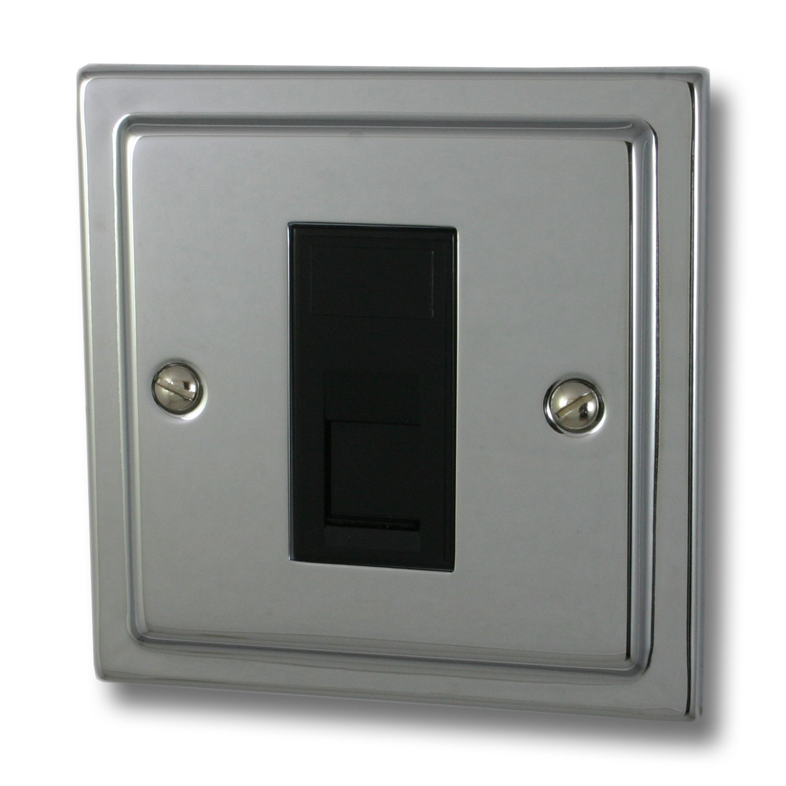 Polished Chrome RJ45 Socket (1 Gang/Black Insert) - G+H TC61B