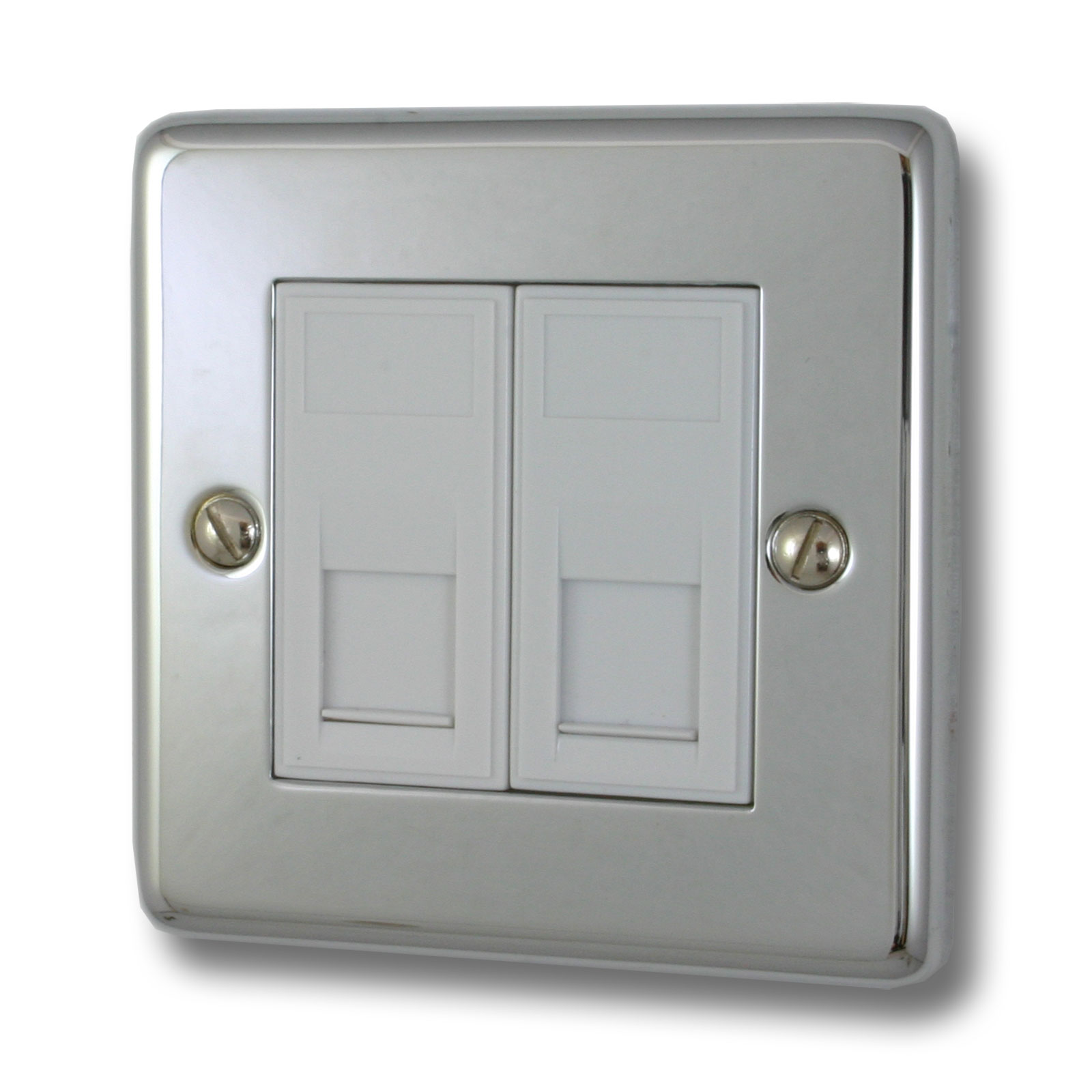 Polished Chrome RJ45 Socket (2 Gang/White Insert) - G+H CC62W