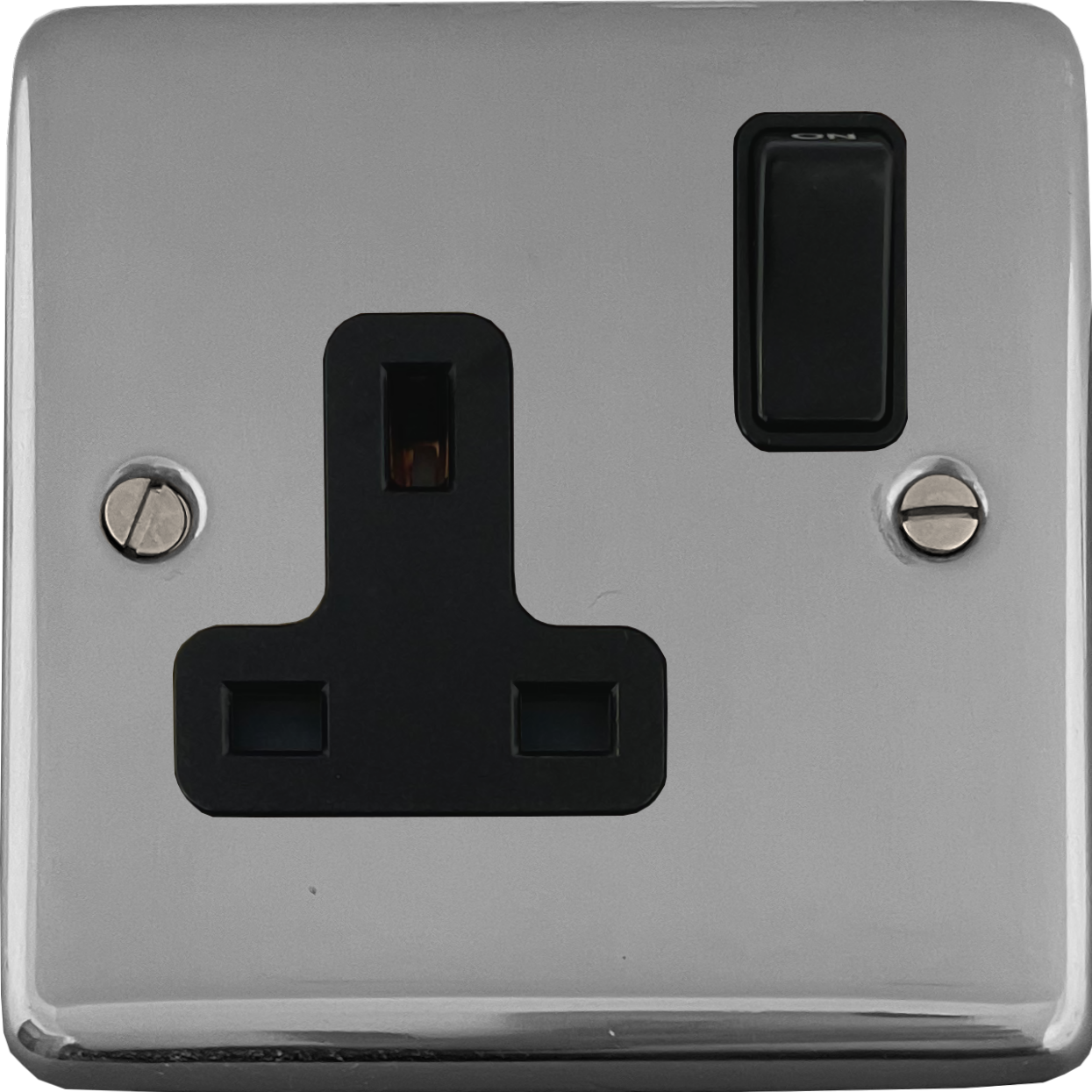 Polished Chrome Single Socket (Black Switch) - G+H CC9B