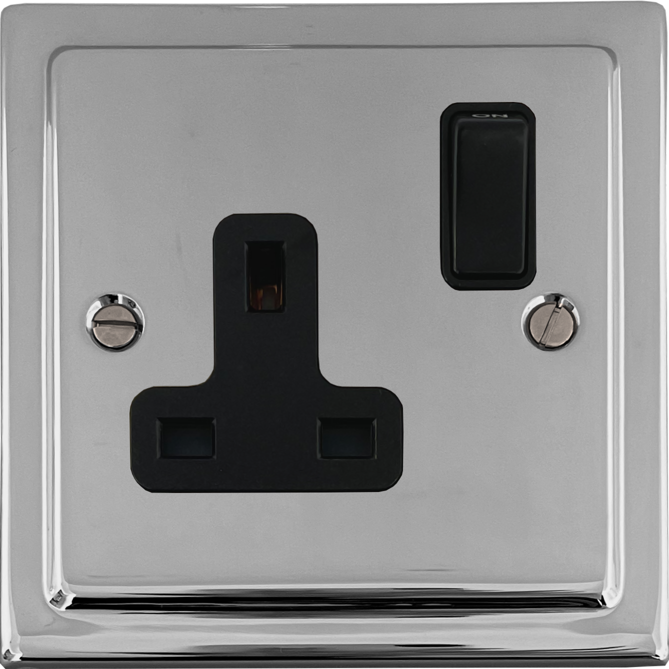 Polished Chrome Single Socket (Black Switch) - G+H TC9B