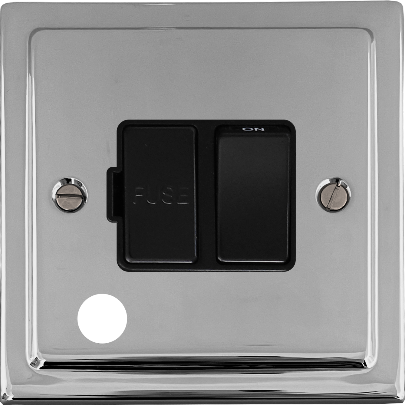 Polished Chrome Switched Fused Spur with Flex Outlet (Black Switch) - G+H TC56B
