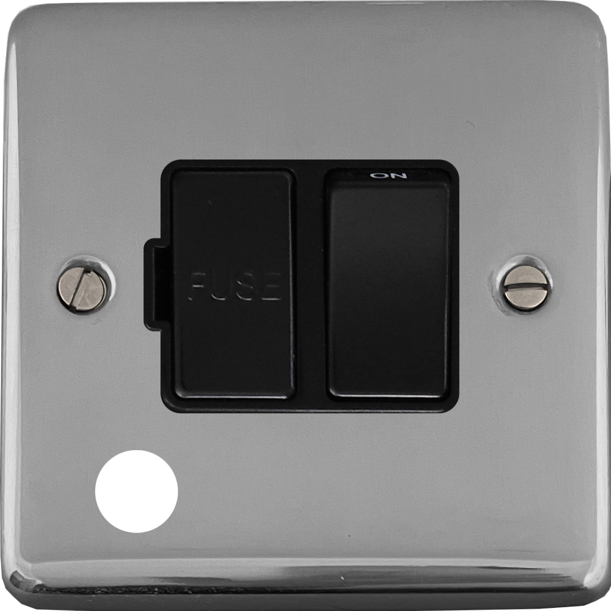 Polished Chrome Switched Fused Spur with Flex Outlet (Black Switch) - G+H CC56B