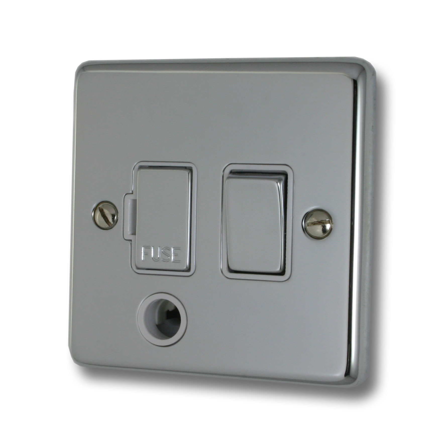 Polished Chrome Switched Fused Spur with Flex Outlet (White Insert/Chrome Switch) - G+H CC256