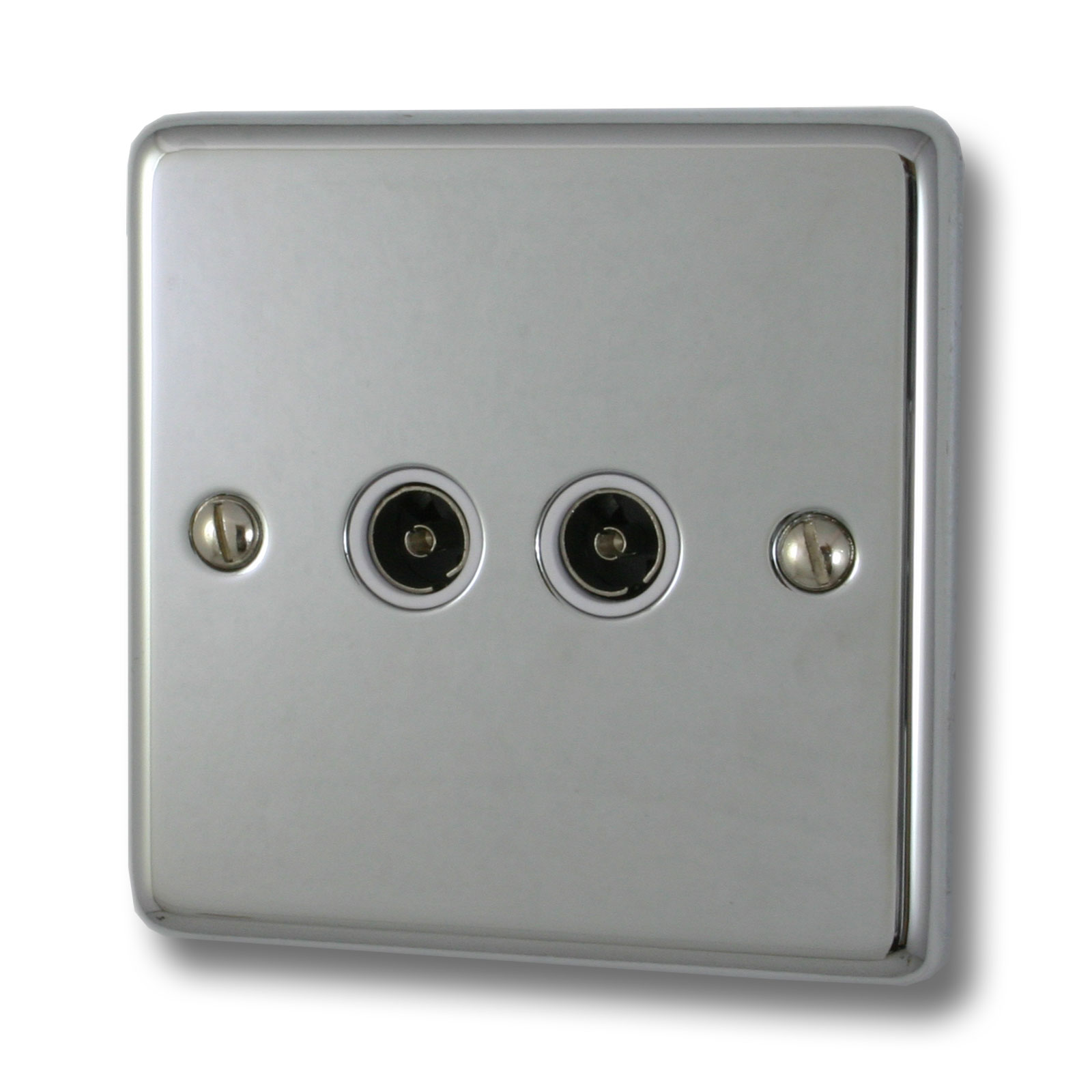 Polished Chrome TV Socket (2 Gang/White Insert) - G+H CC36W