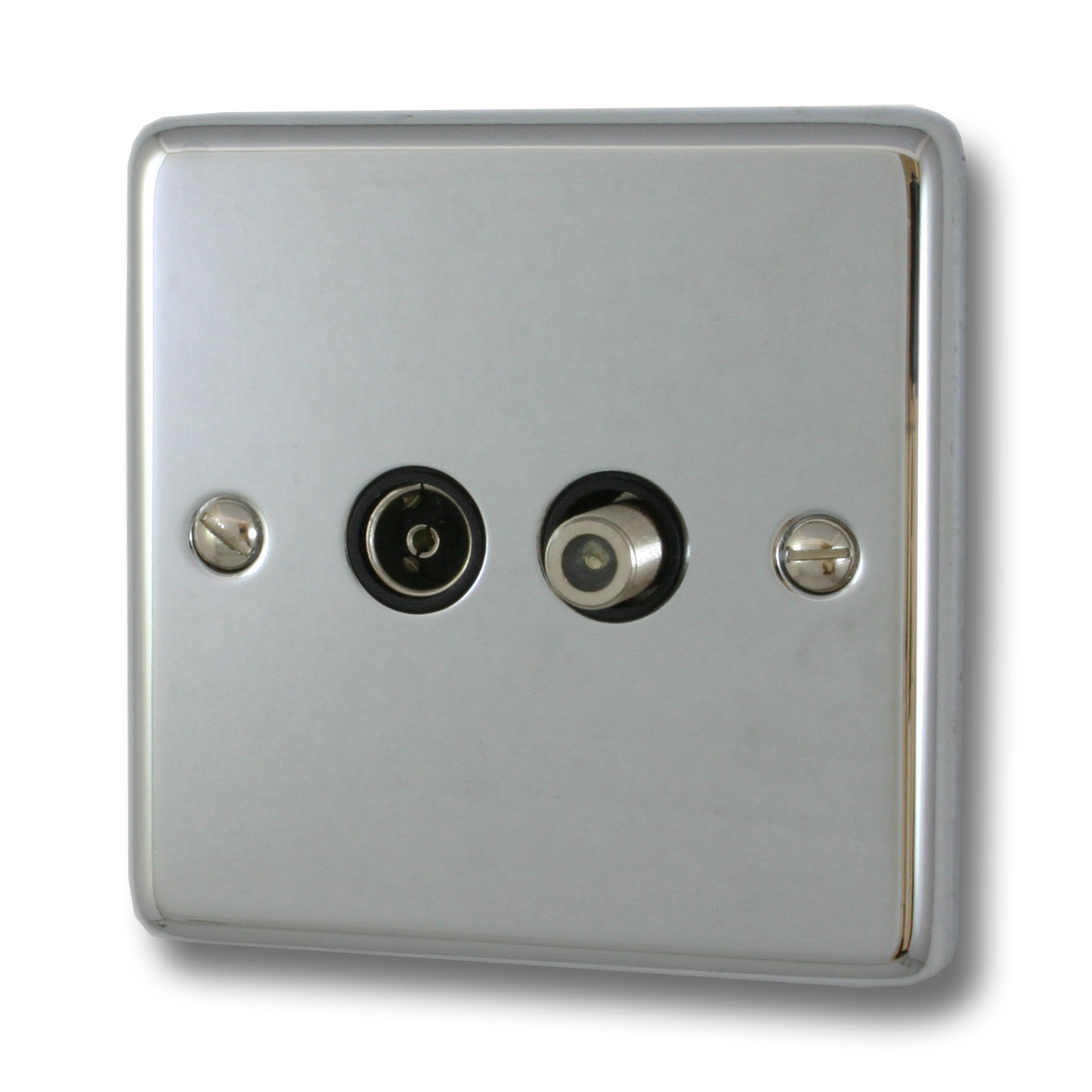 Polished Chrome TV/Satellite Socket (Black Insert) - G+H CC38B