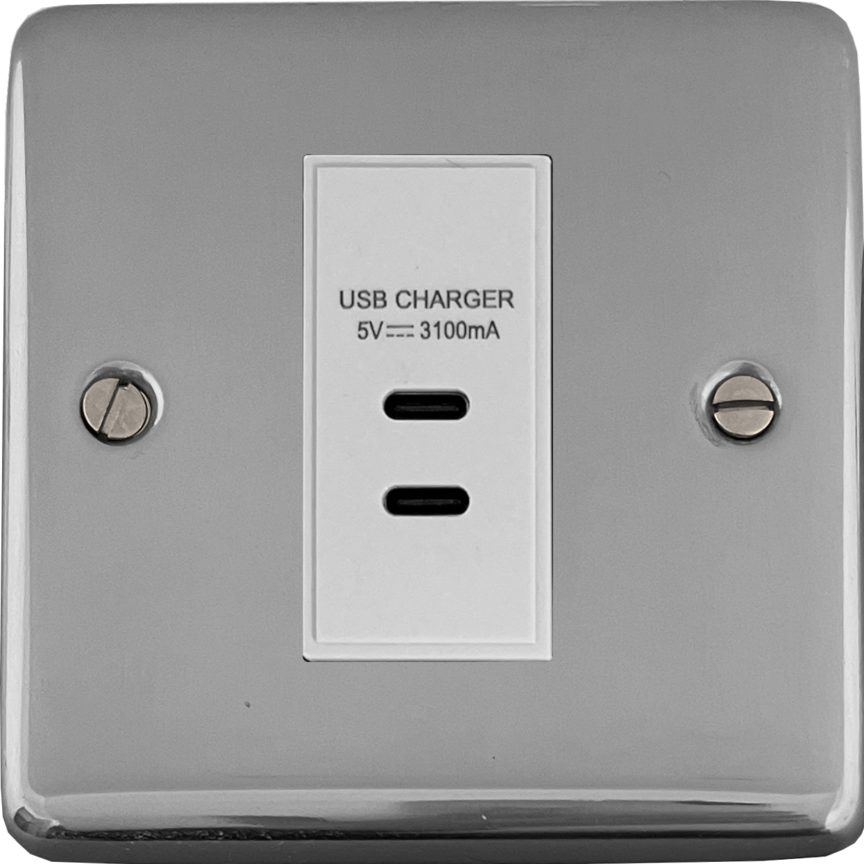 Polished Chrome USB Charger (2x USB-C) (1 Gang/White Insert) - G+H CC42W