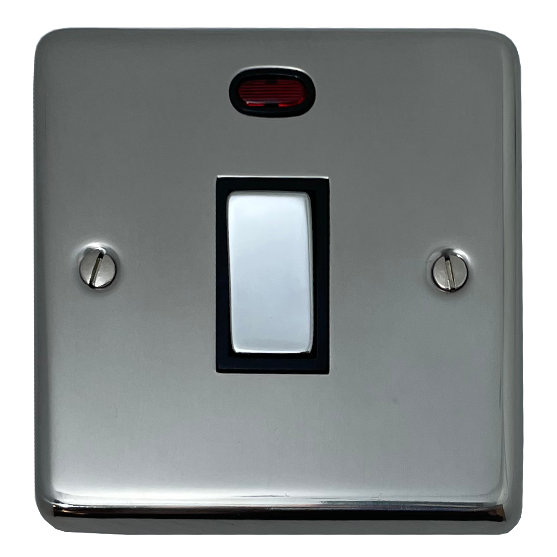 Polished Steel 20A DP Switch with Neon (Black Insert/Chrome Switch) - G+H CPS326