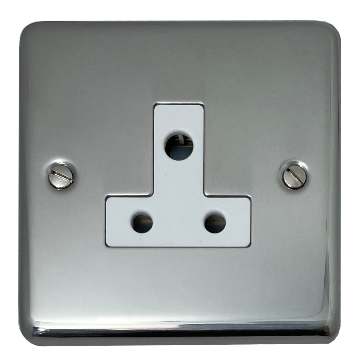 Polished Steel 5A 3 Pin Socket (White Insert)