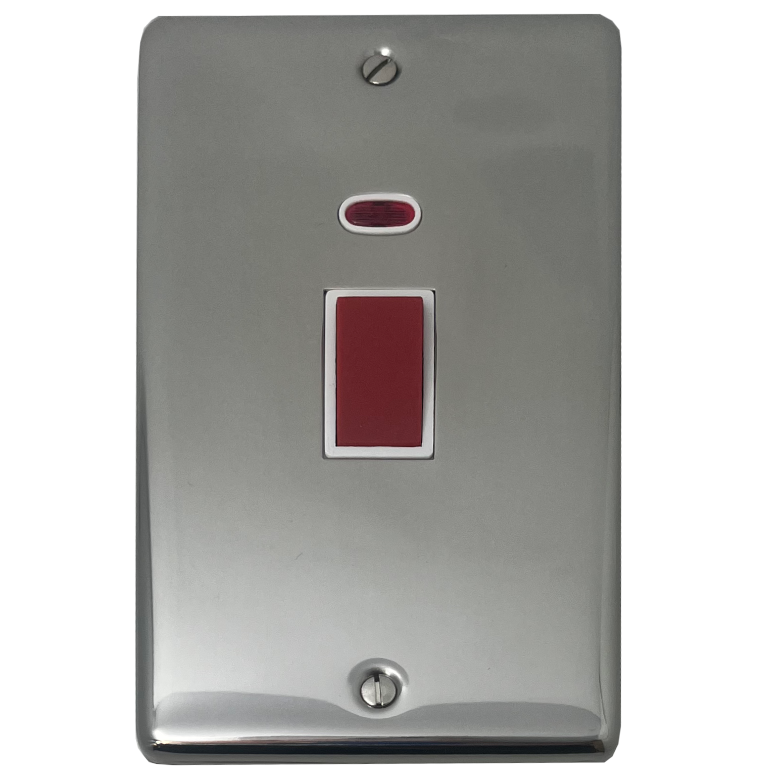 Polished Steel Cooker Switch with Neon (White Insert/Vertical Plate) - G+H CPS28W