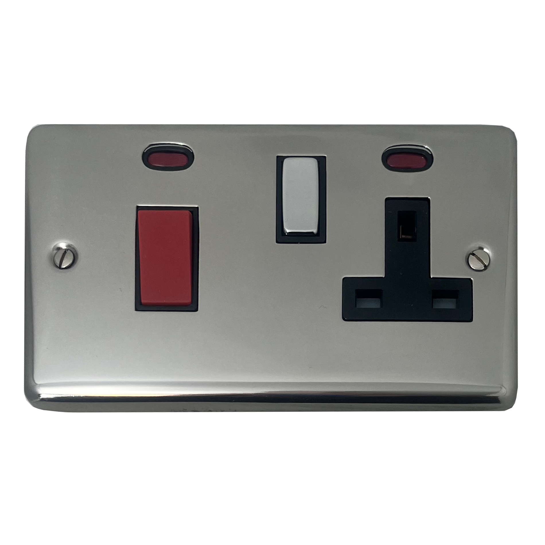 Polished Steel Cooker Switch with Socket (Black Insert/Chrome Switch) - G+H CPS329