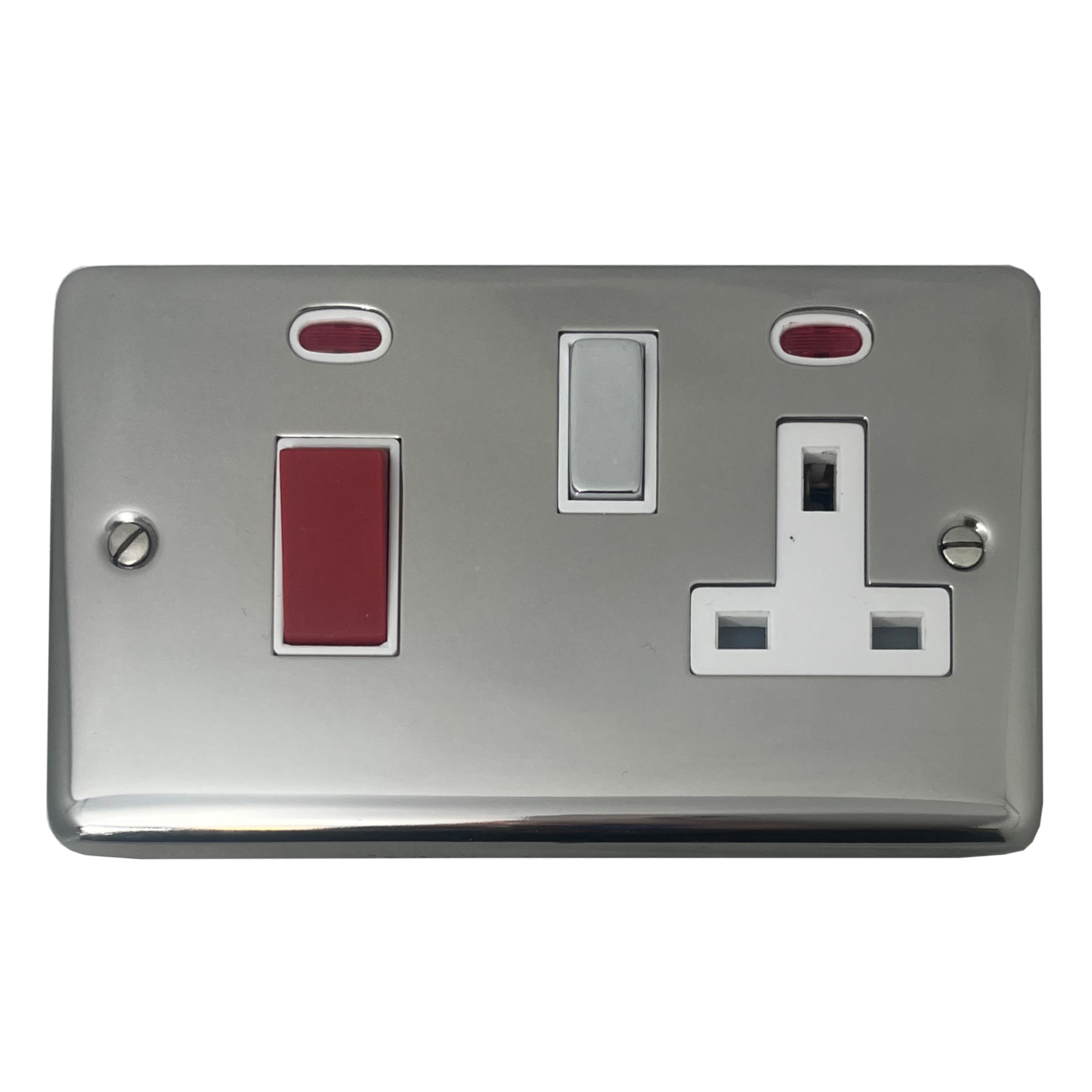 Polished Steel Cooker Switch with Socket (White Insert/Chrome Switch) - G+H CPS229