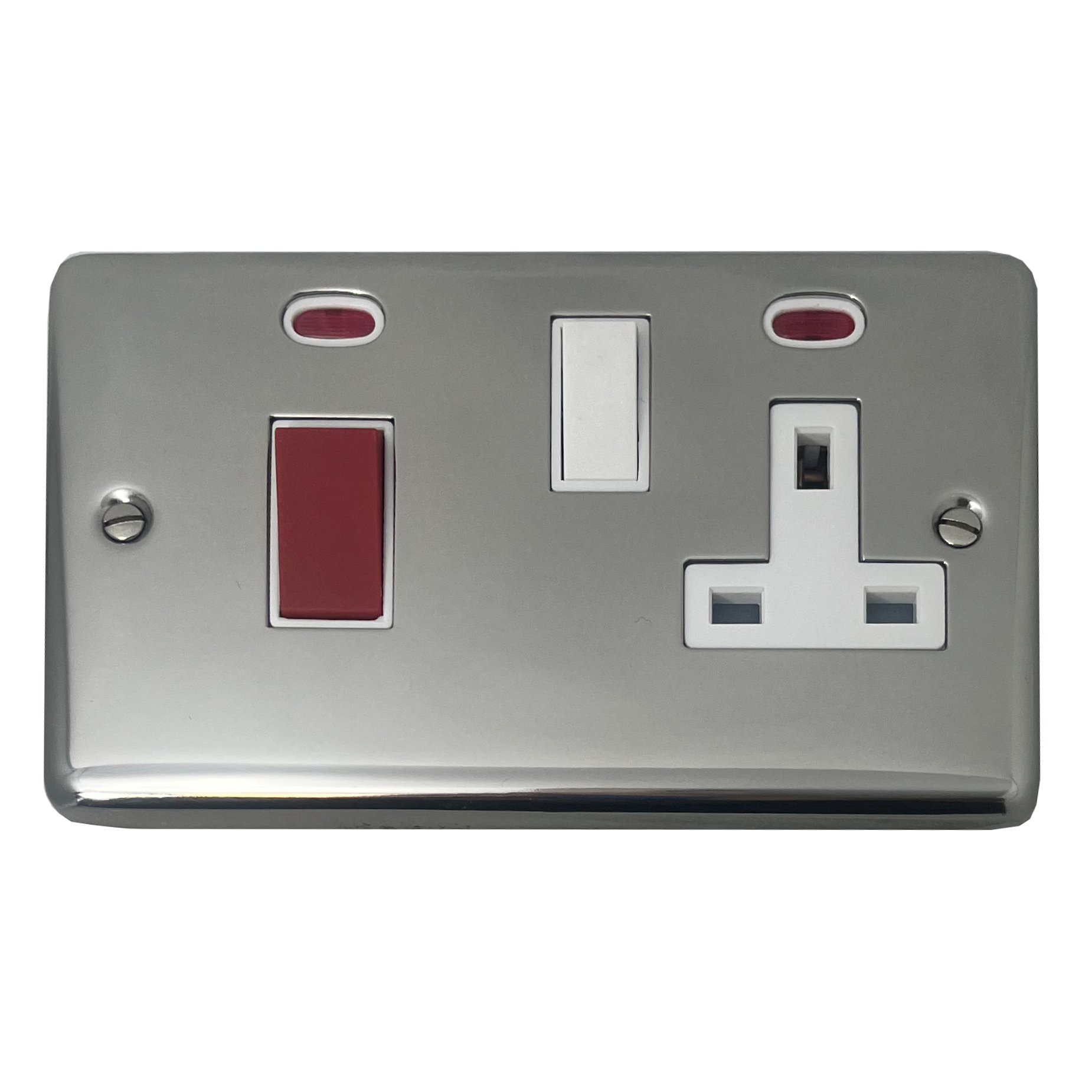 Polished Steel Cooker Switch with Socket (White Switch) - G+H CPS29W