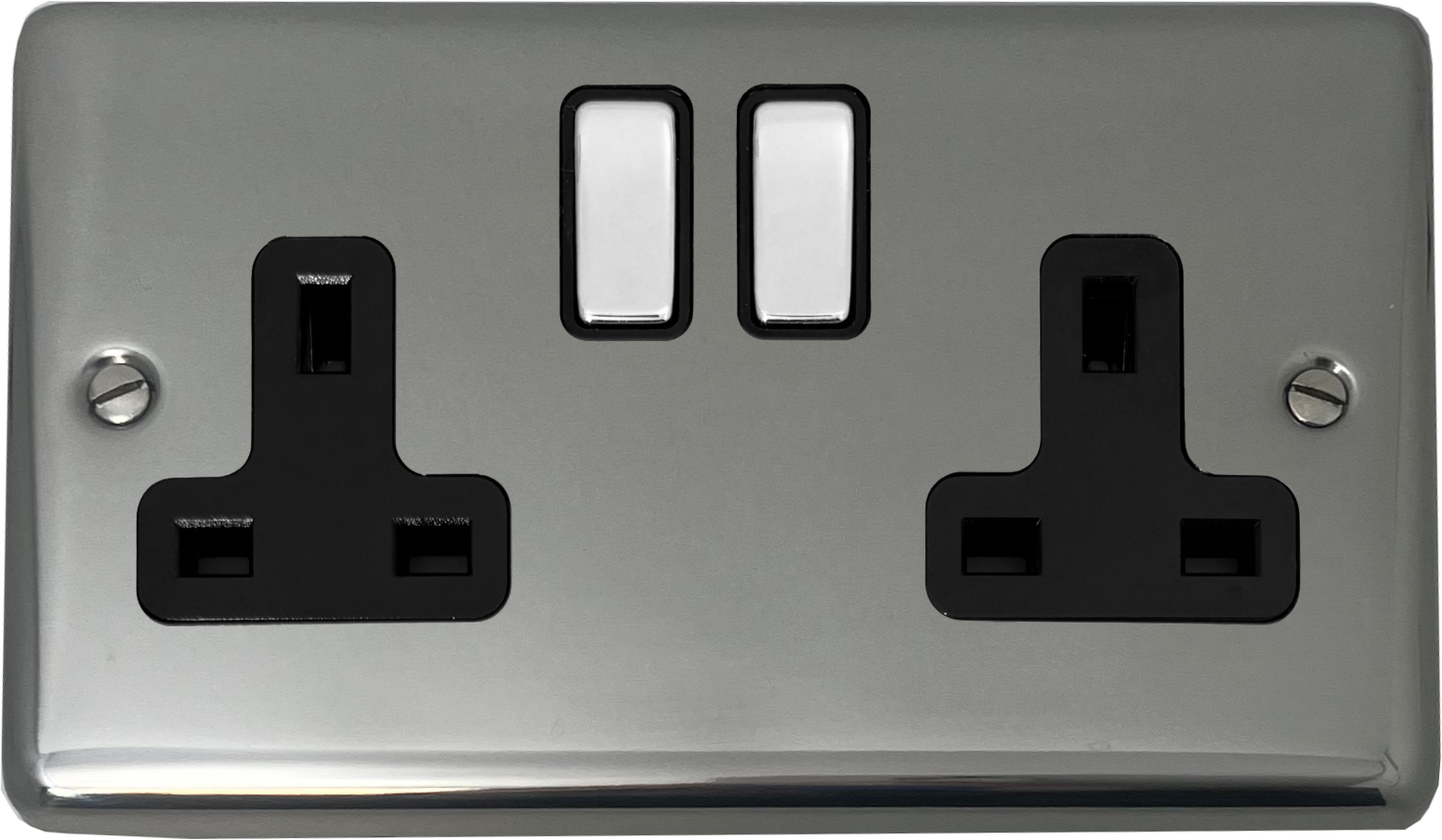 Polished Steel Double Socket (Black Insert/Chrome Switch) - G+H CPS310