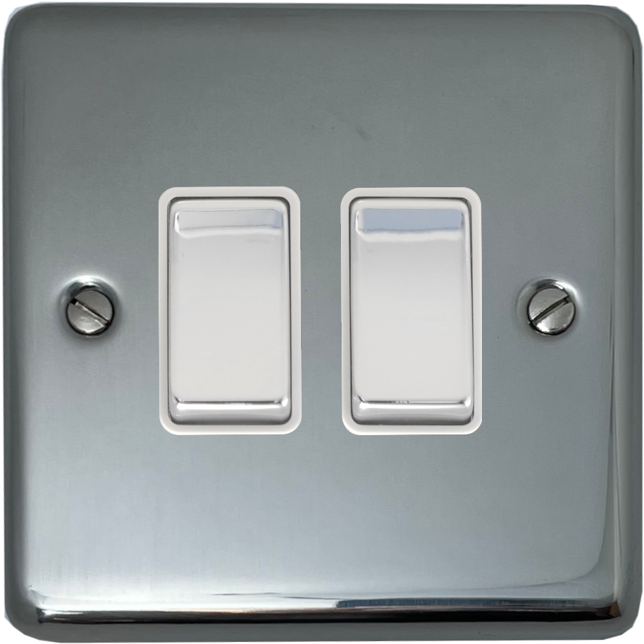 Polished Steel Light Switch (2 Gang/White Insert/Chrome Switch) - G+H CPS202