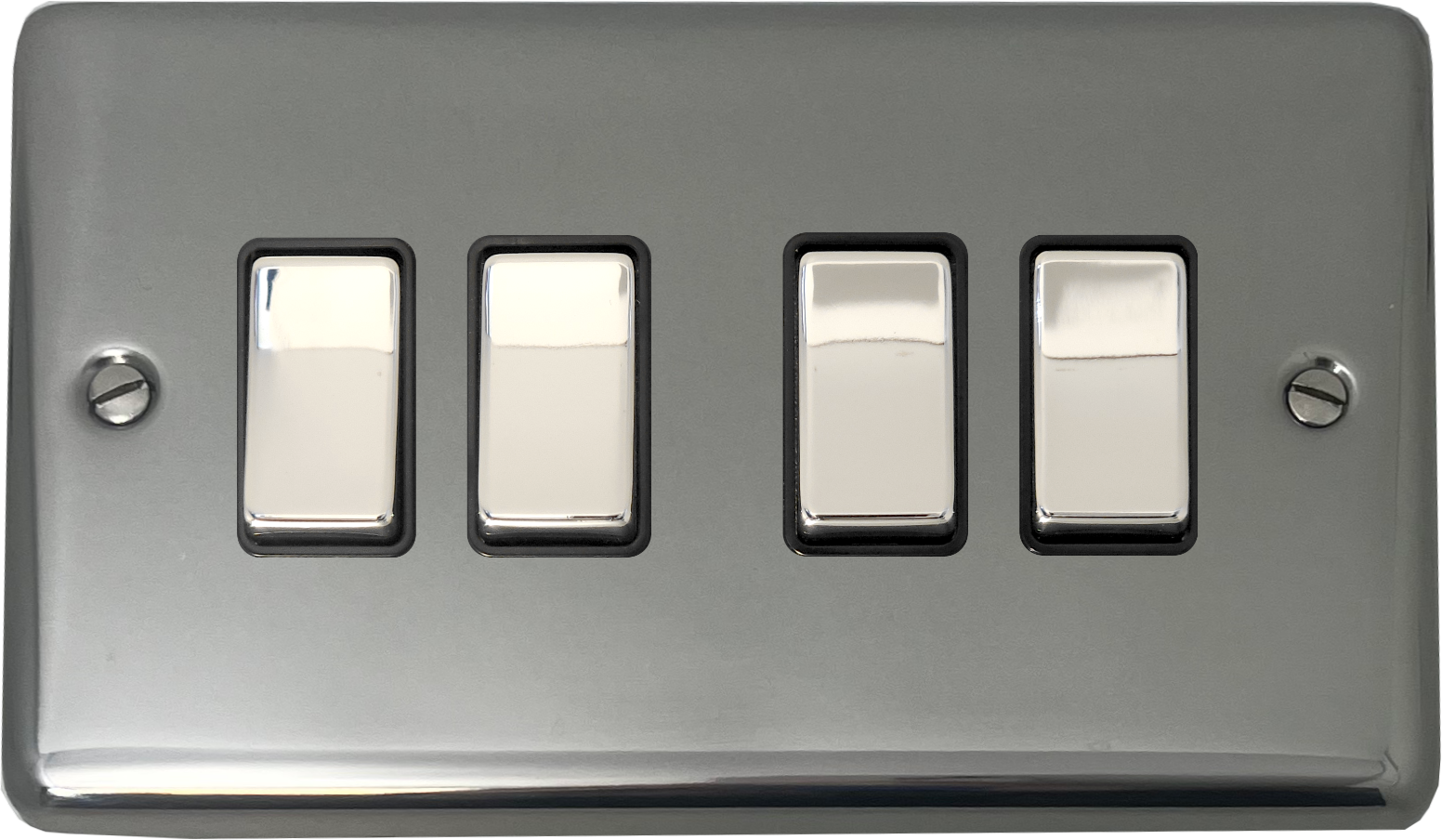 Polished Steel Light Switch (4 Gang/Black Insert/Chrome Switches) - G+H CPS304
