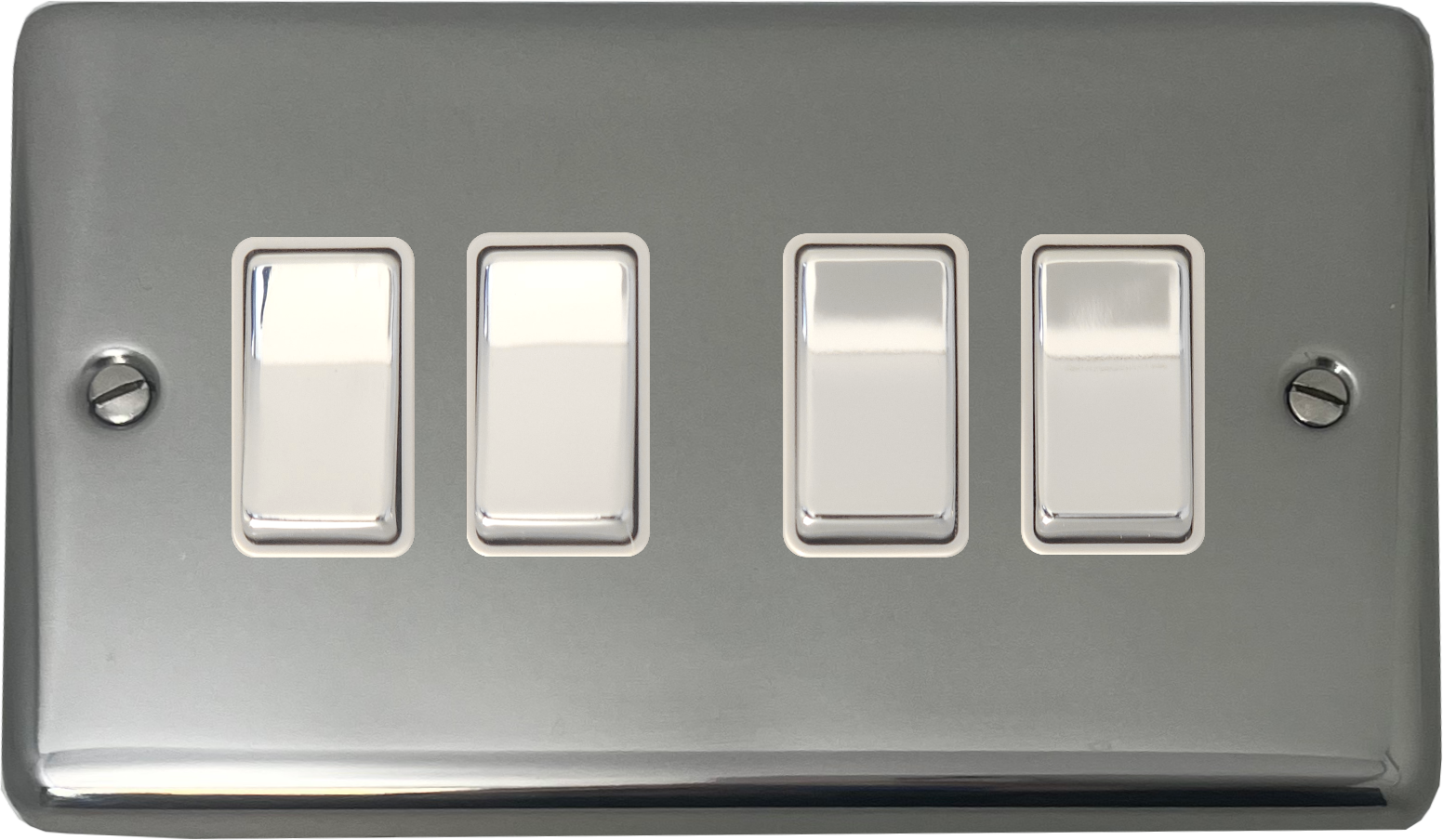 Polished Steel Light Switch (4 Gang/White Insert/Chrome Switches) - G+H CPS204