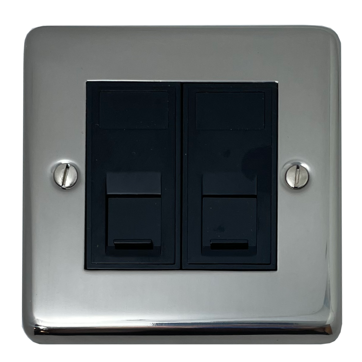 Polished Steel RJ45 Socket (2 Gang/Black Insert) - G+H CPS62B