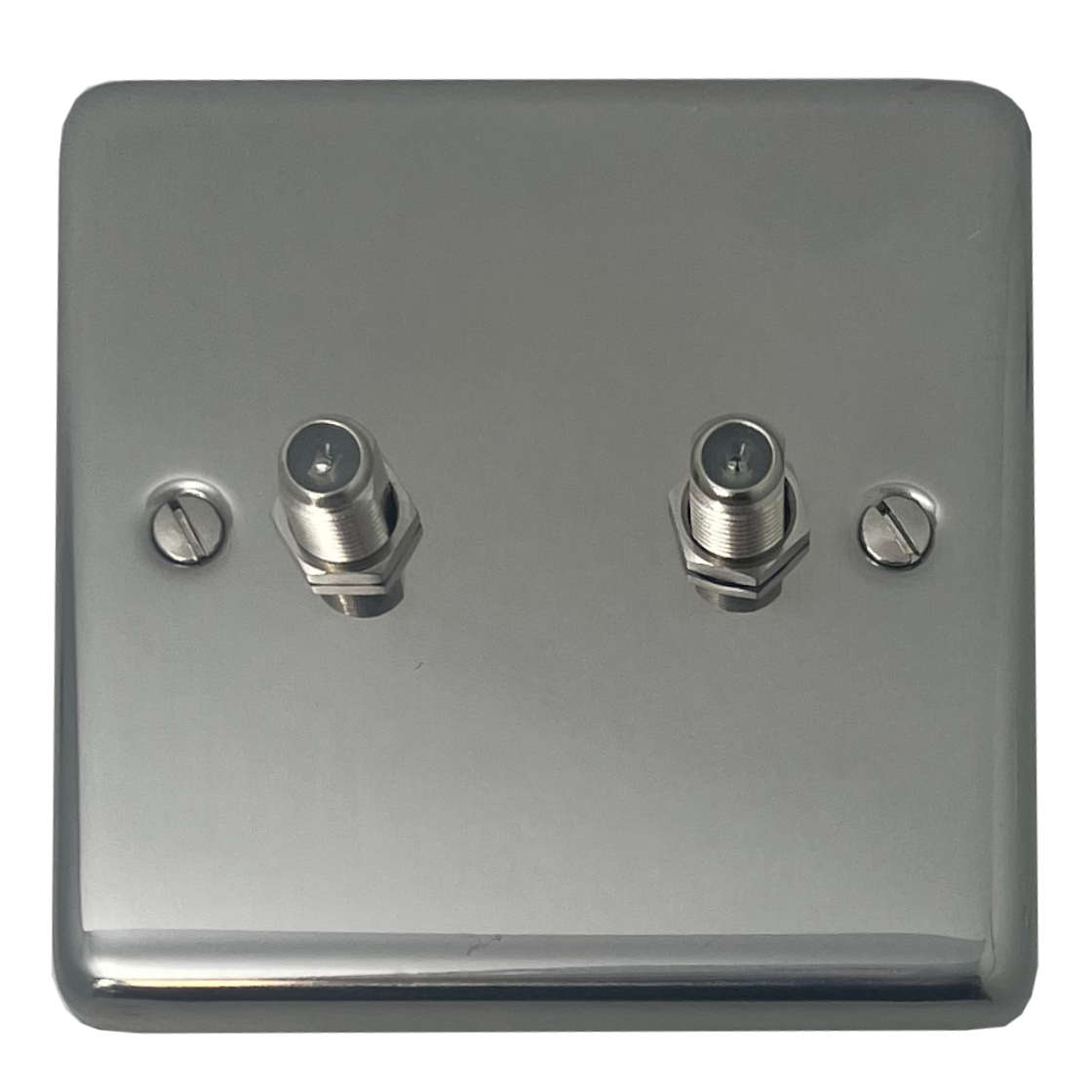 Polished Steel Satellite Socket (2 Gang) - G+H CPS237
