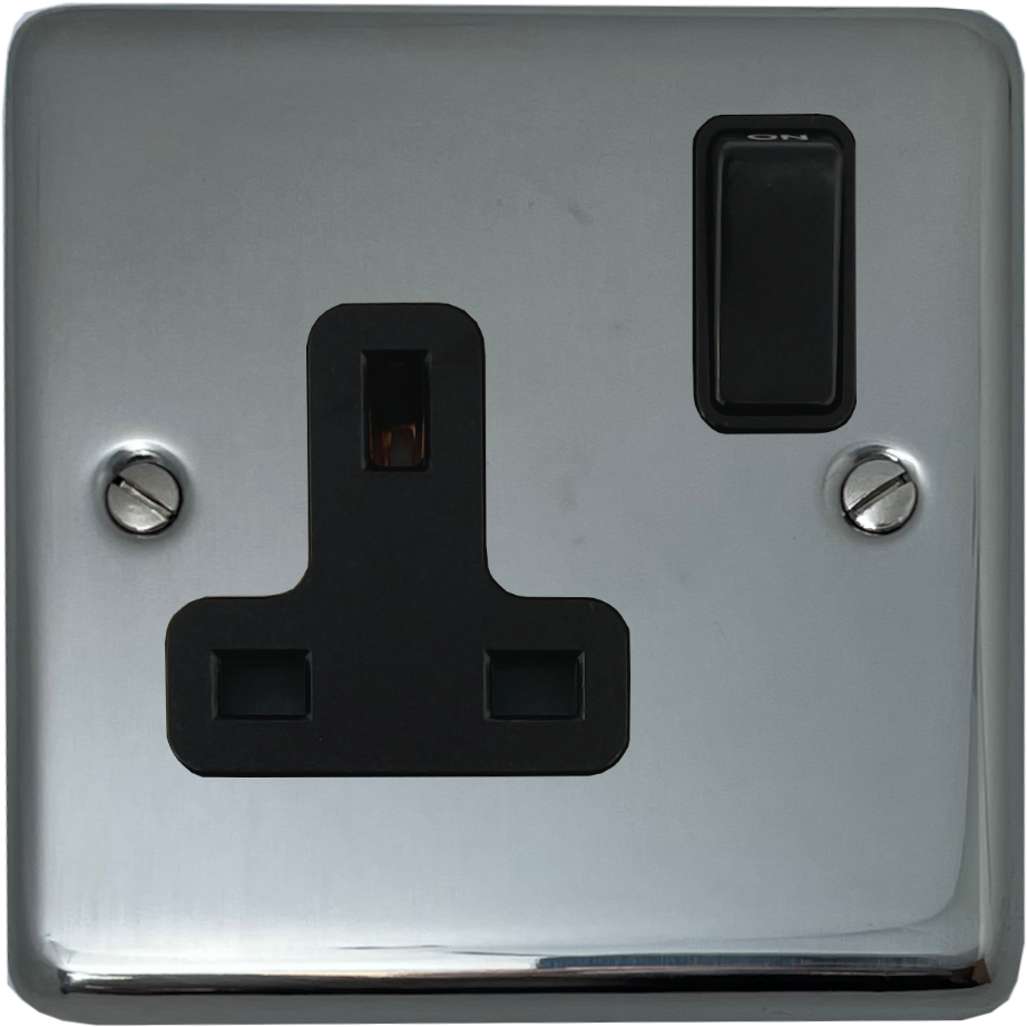 Polished Steel Single Socket (Black Switch) - G+H CPS9B