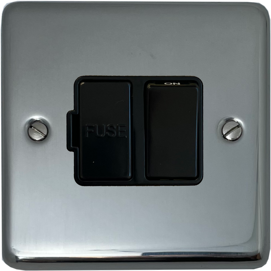 Polished Steel Switched Fused Spur (Black Switch) - G+H CPS57B