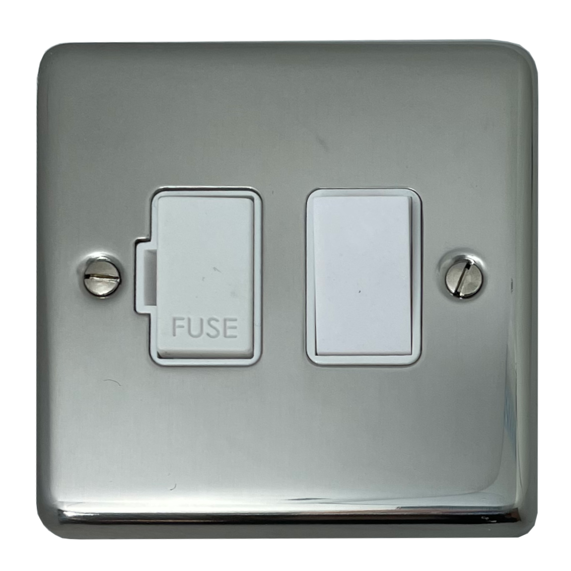 Polished Steel Switched Fused Spur (White Switch) - G+H CPS57W