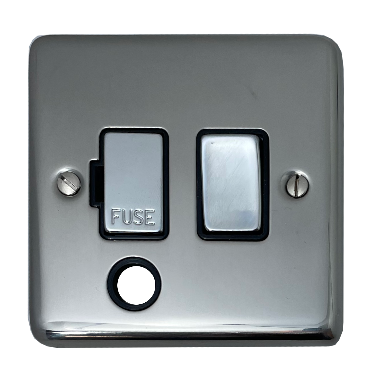 Polished Steel Switched Fused Spur with Flex Outlet (Black Insert/Chrome Switch) - G+H CPS356