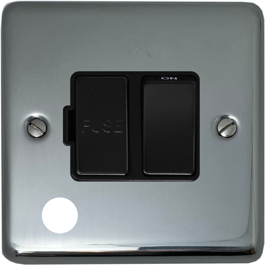 Polished Steel Switched Fused Spur with Flex Outlet (Black Switch) - G+H CPS56B