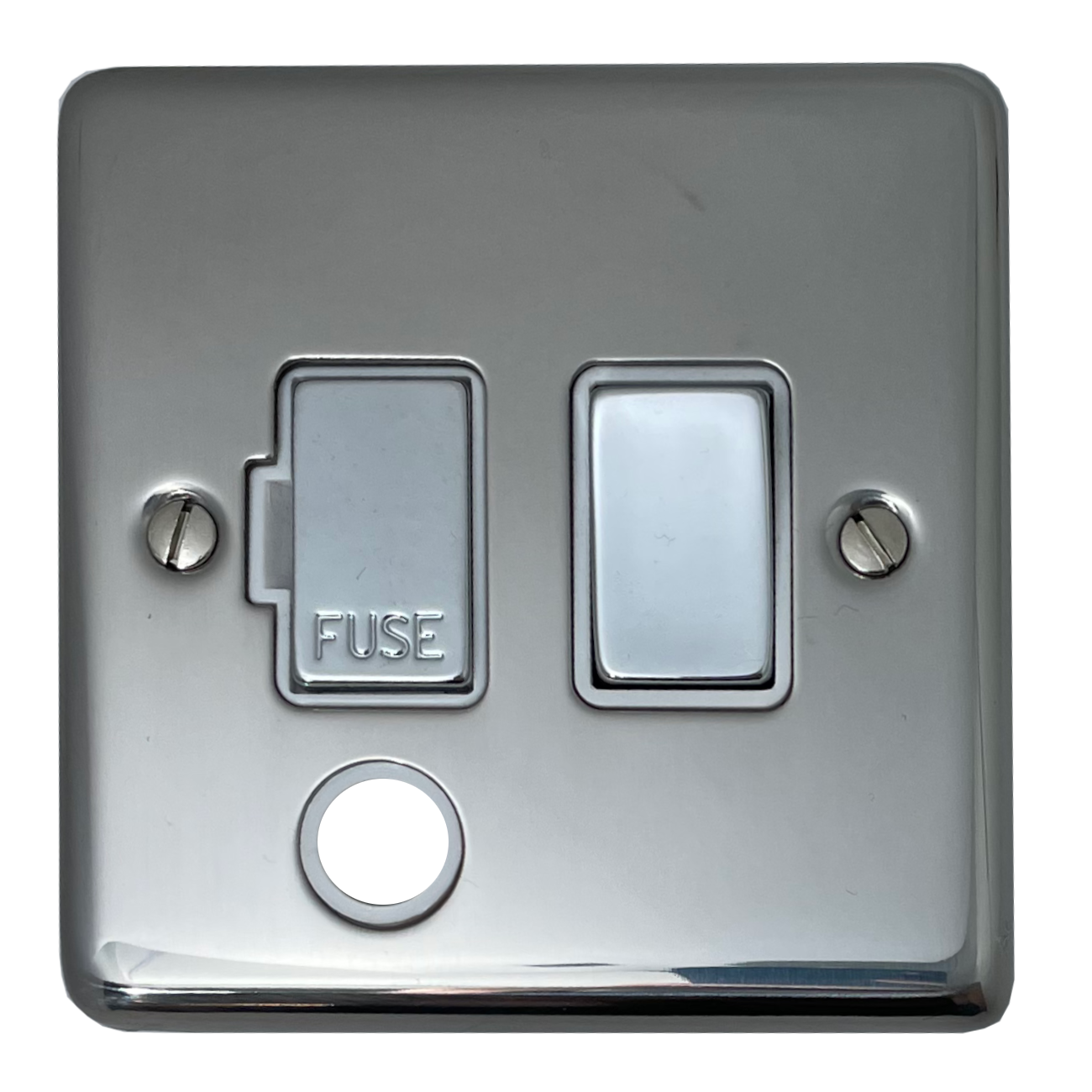 Polished Steel Switched Fused Spur with Flex Outlet (White Insert/Chrome Switch) - G+H CPS256