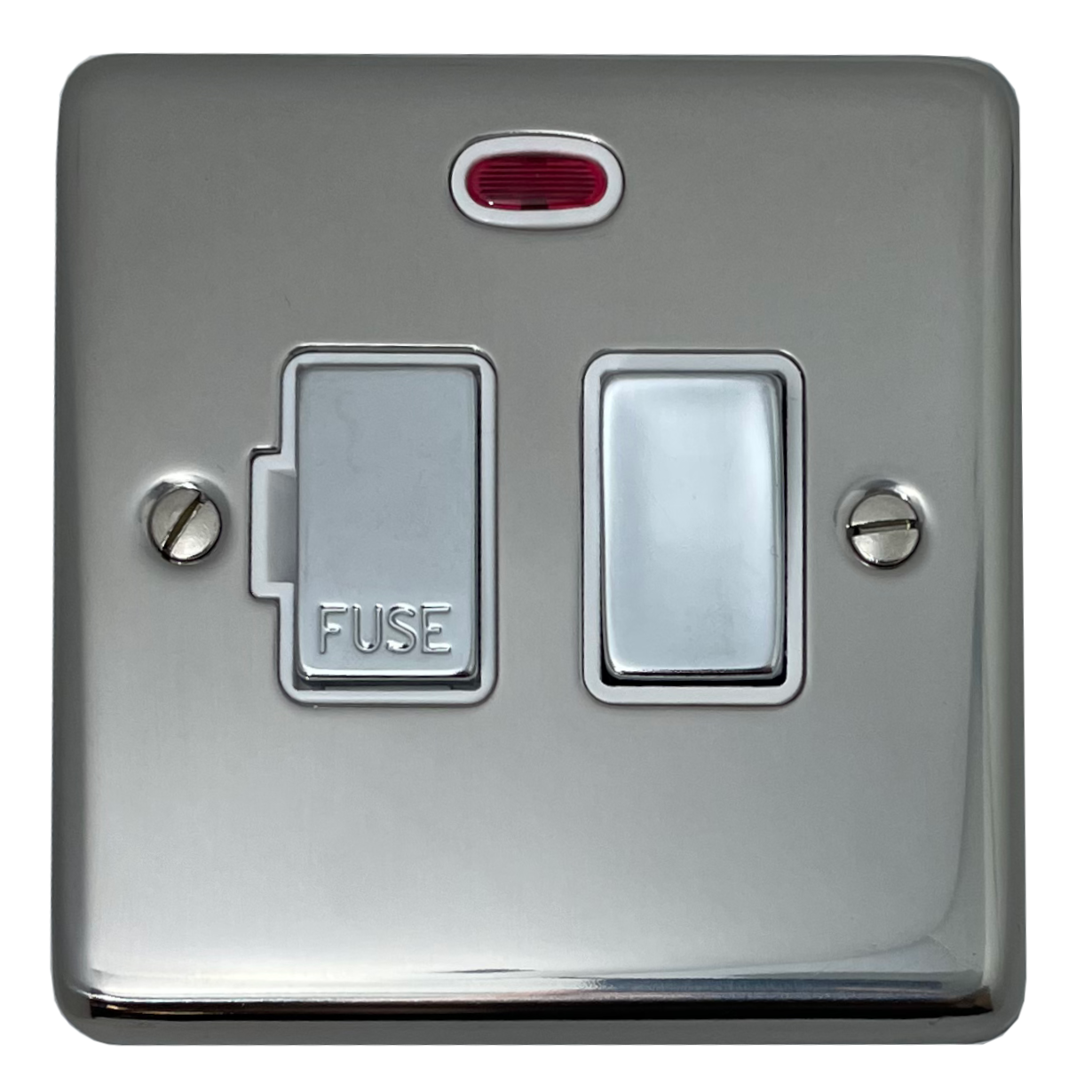 Polished Steel Switched Fused Spur with Neon (White Insert/Chrome Switch) - G+H CPS227