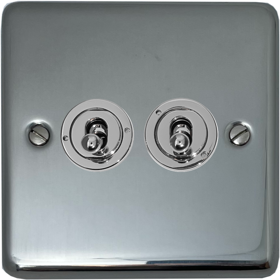 Polished Steel Toggle Switch (2 Gang) - G+H CPS382-PC