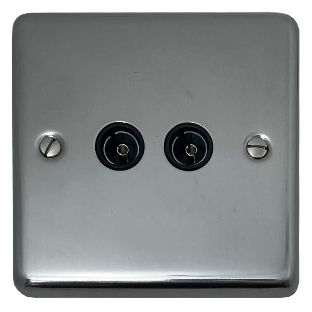 Polished Steel TV Socket (2 Gang/Black Insert) - G+H CPS36B