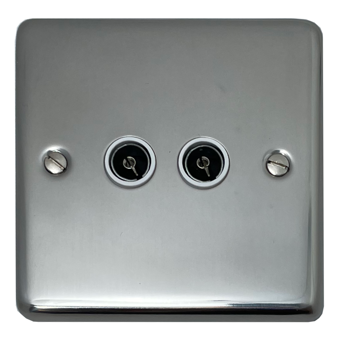 Polished Steel TV Socket (2 Gang/White Insert) - G+H CPS36W