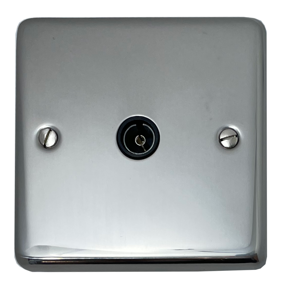 Polished Steel TV Socket (Black Insert) - G+H CPS35B