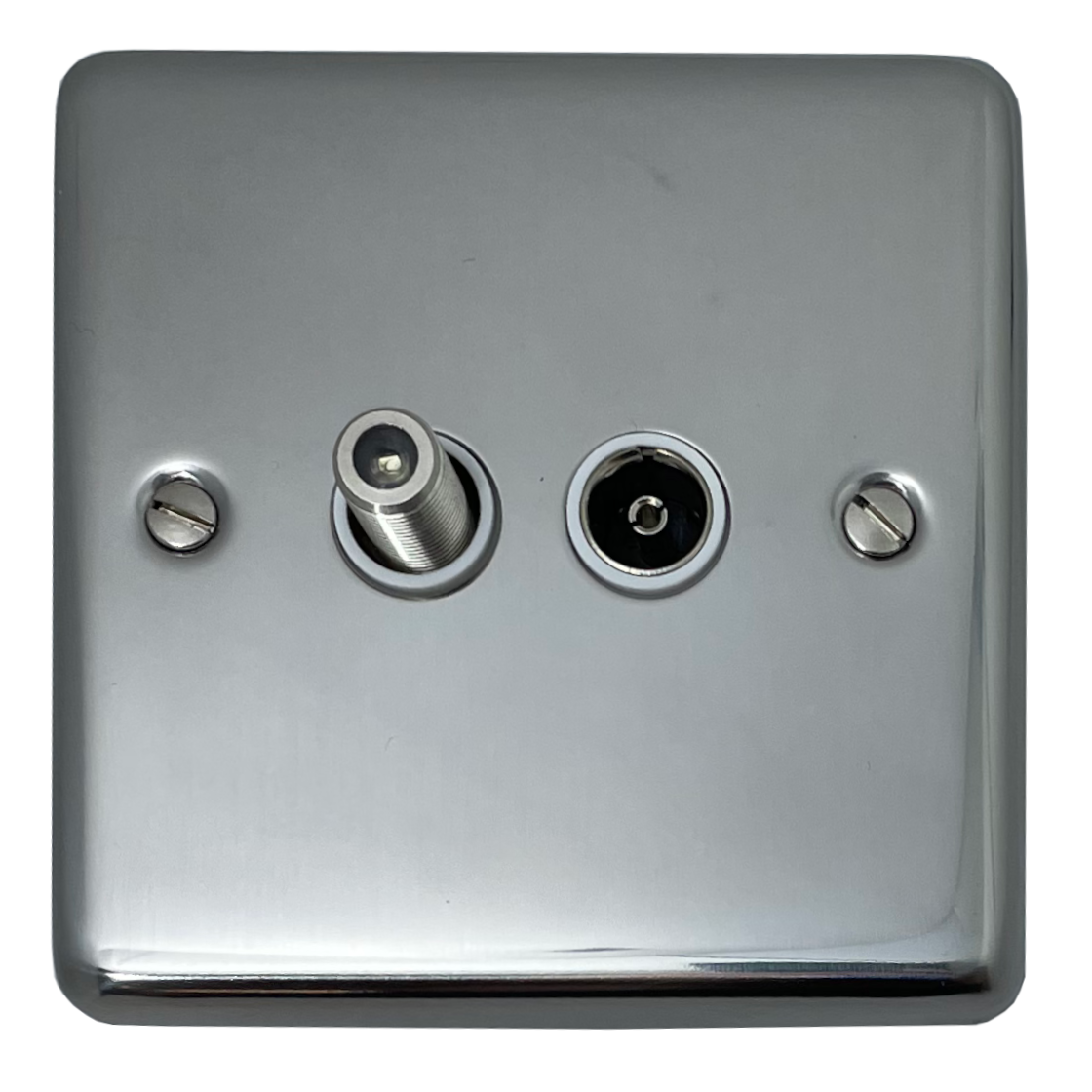 Polished Steel TV/Satellite Socket (White Insert) - G+H CPS38W
