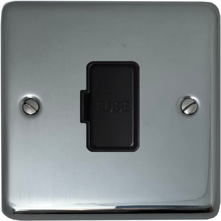 Polished Steel Unswitched Fused Spur (Black Insert)