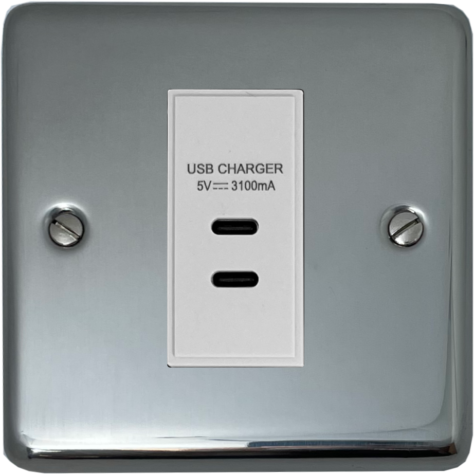 Polished Steel USB Charger (2x USB-C) (1 Gang/White Insert) - G+H CPS42W