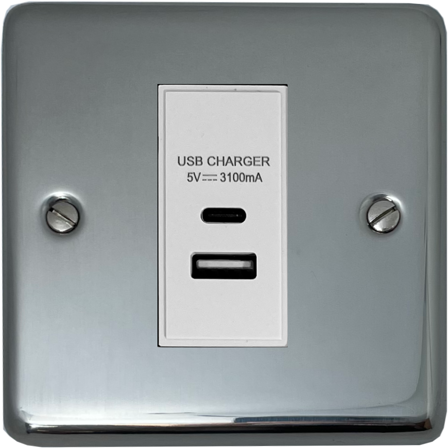Polished Steel USB Charger (USB-A and USB-C) (1 Gang/White Insert) - G+H CPS41W