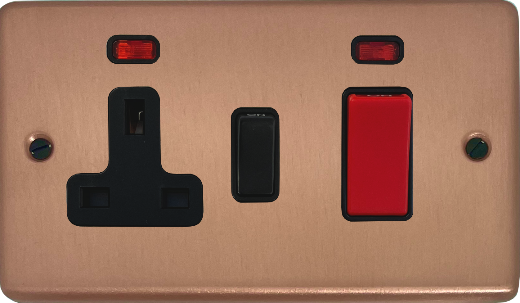 Rose Gold Cooker Switch with Socket (Black Switch) - G+H CRG29B