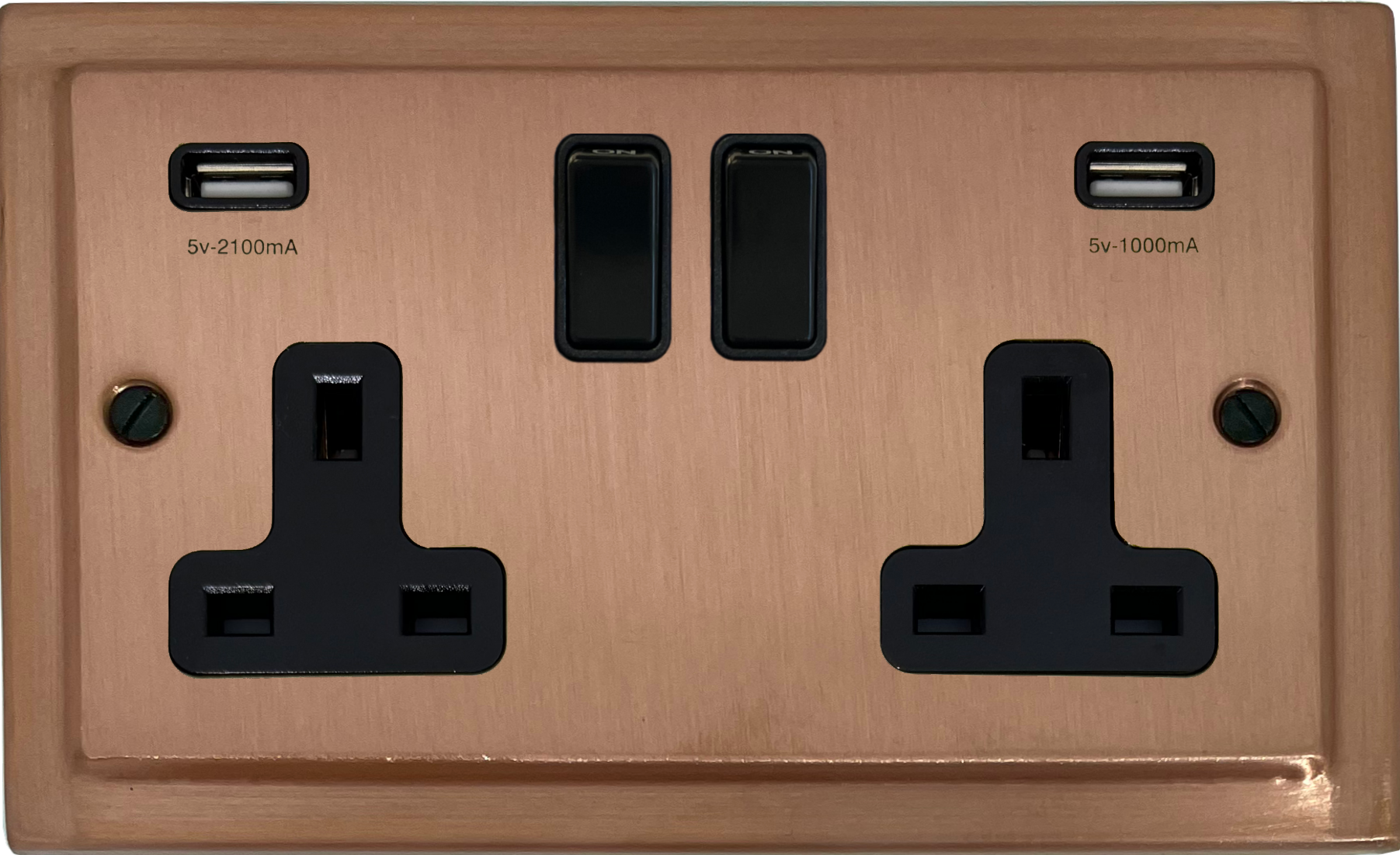 Rose Gold Double Socket with USB (Black Switch) - G+H TRG910B