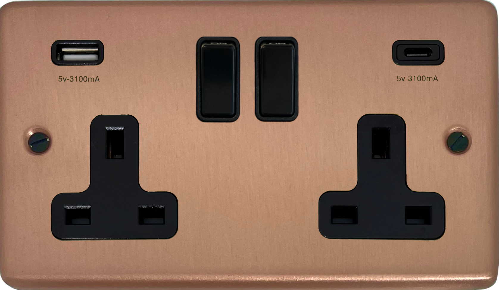 Rose Gold Double Socket with USB (USB-A and USB-C/Black Switches) - G+H CRG911B