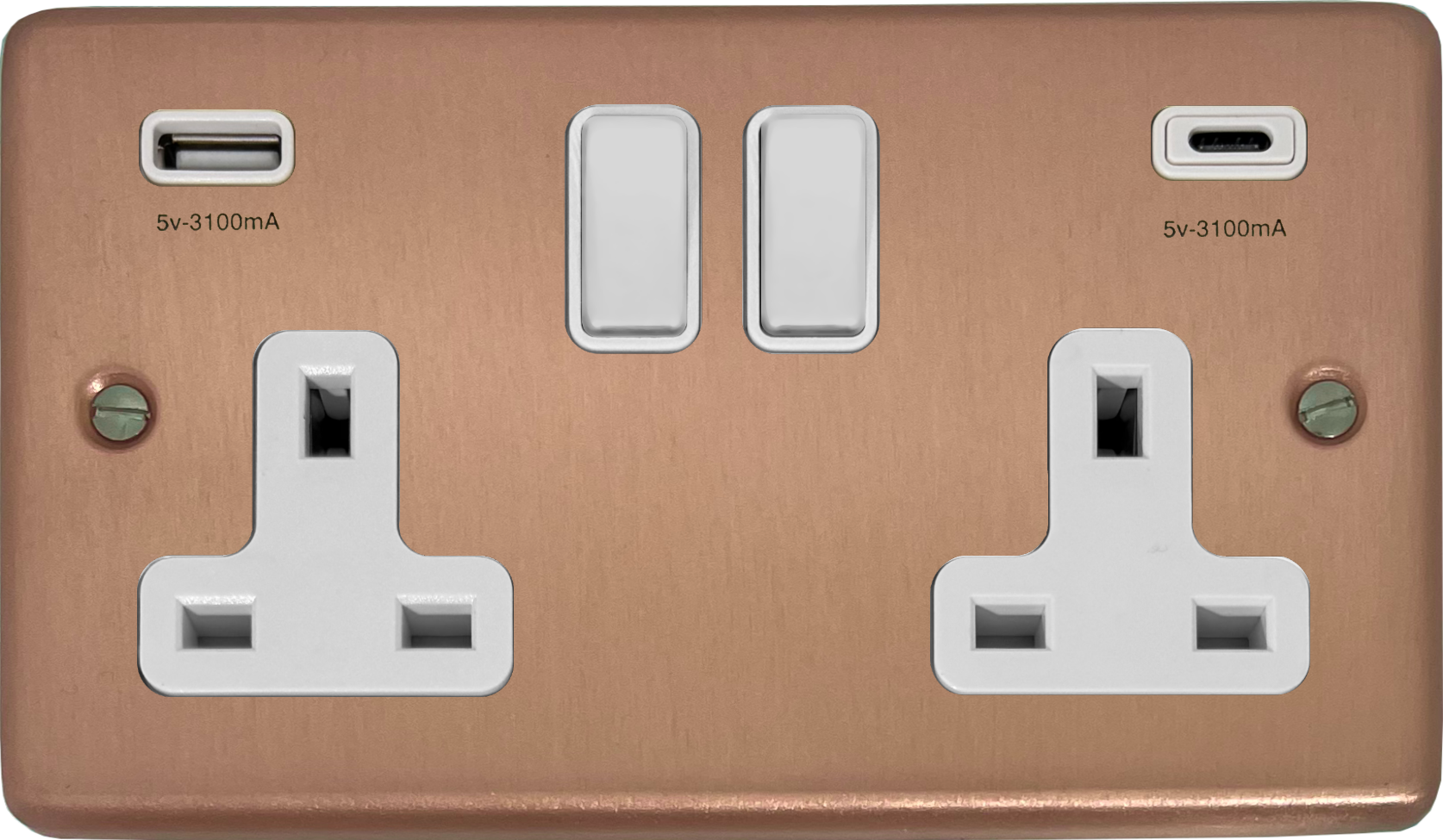 Rose Gold Double Socket with USB (USB-A and USB-C/White Switches) - G+H CRG911W