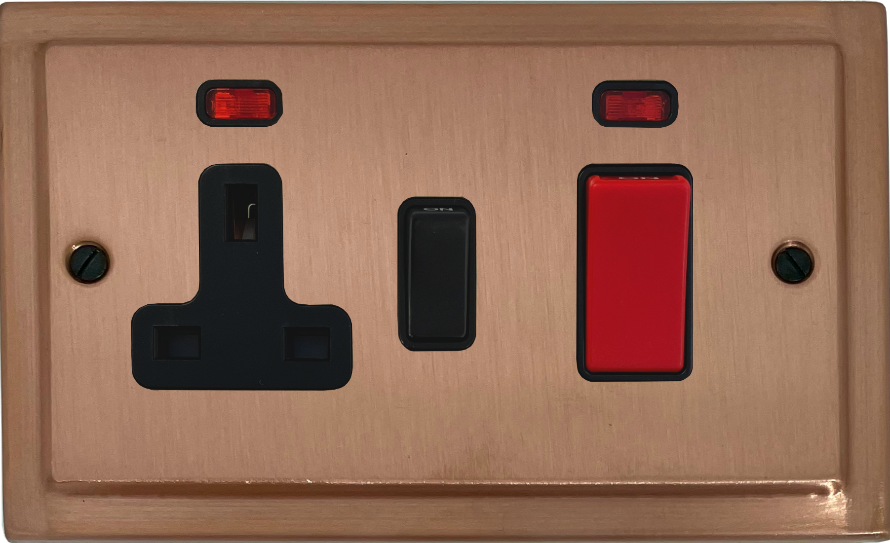 Rose Gold Red Cooker Switch With Socket (Black Insert/Black Switch) - G+H TRG29B