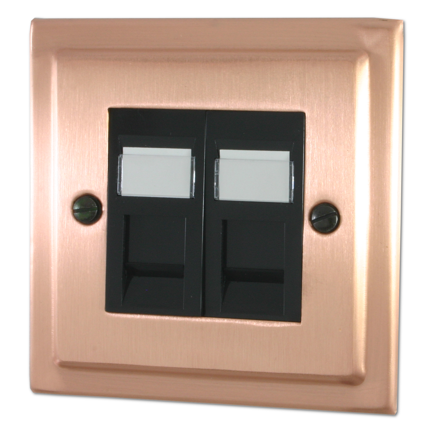 Rose Gold RJ45 Socket (2 Gang/Black Insert)
