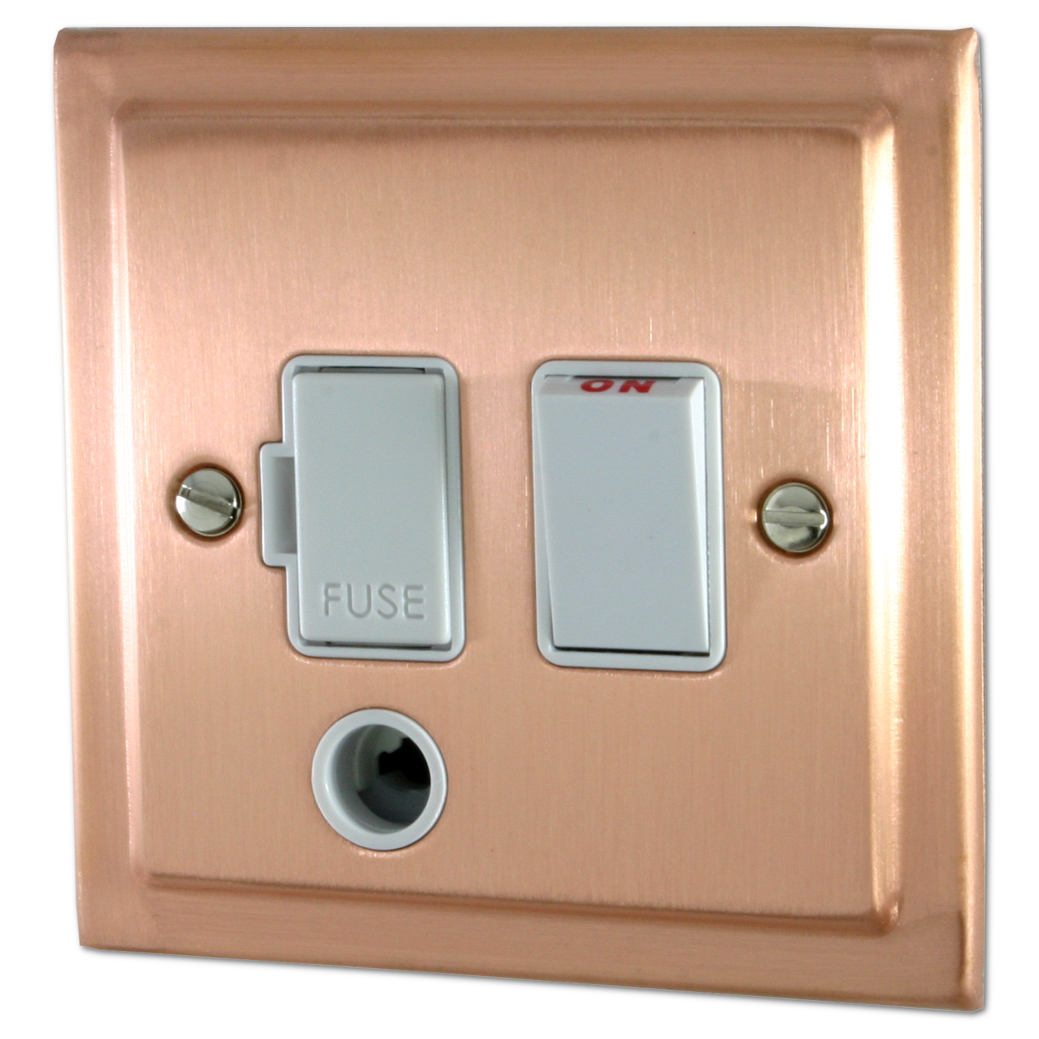 Rose Gold Switched Fused Spur with Flex Outlet (White Switch) - G+H TRG56W