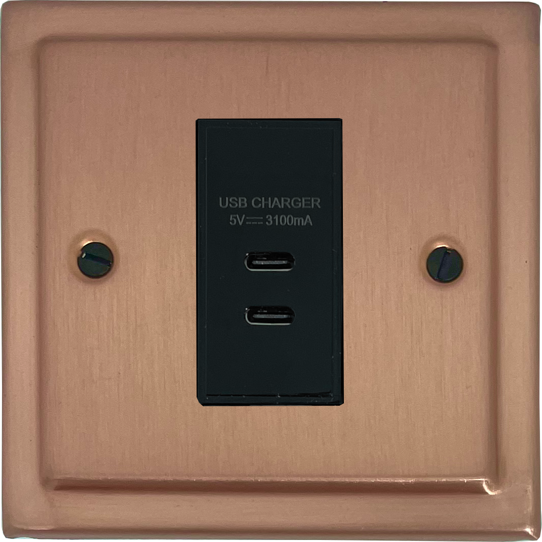 Rose Gold USB Charger (2x USB-C) (1 Gang/Black Insert) - G+H TRG42B