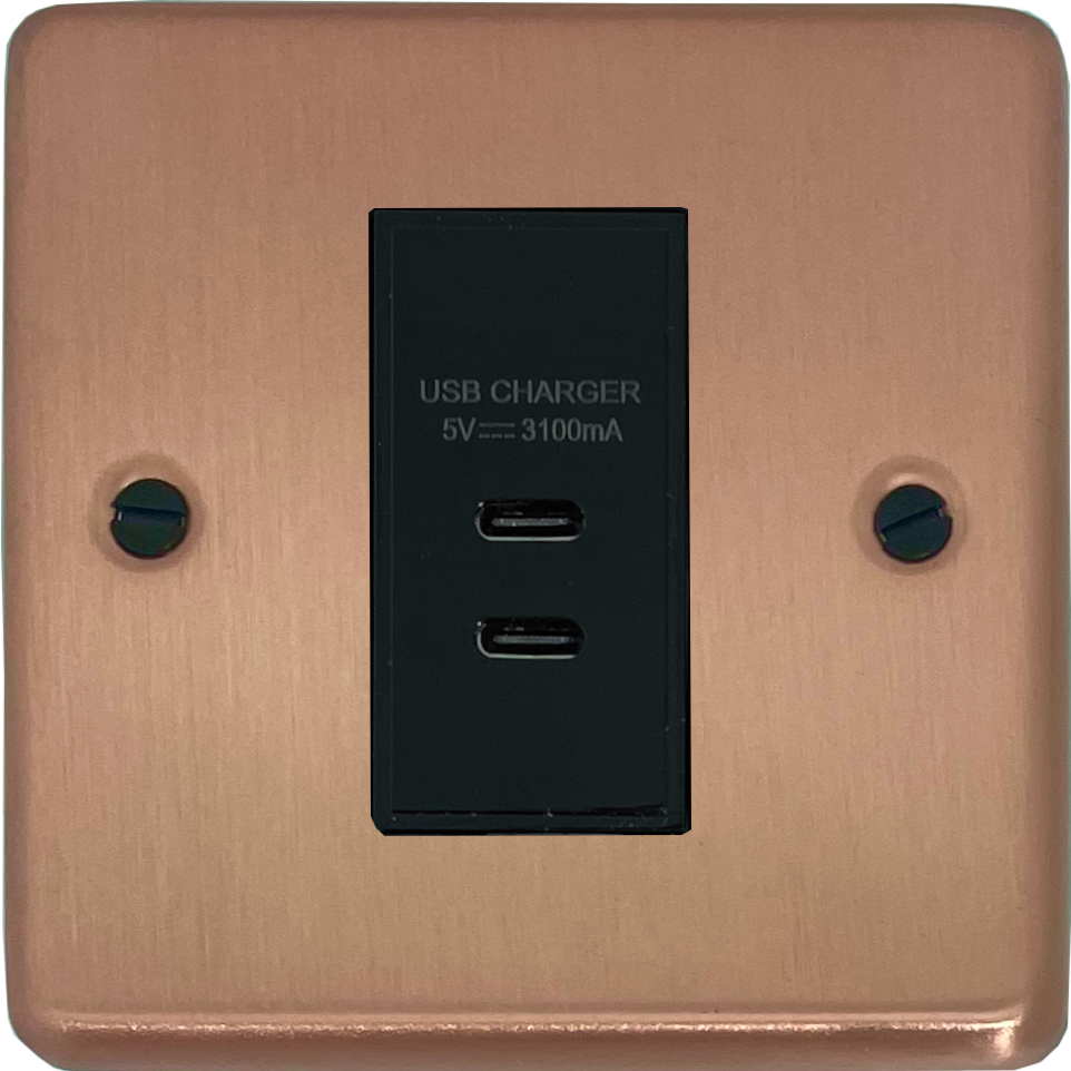 Rose Gold USB Charger (2x USB-C) (1 Gang/Black Insert) - G+H CRG42B
